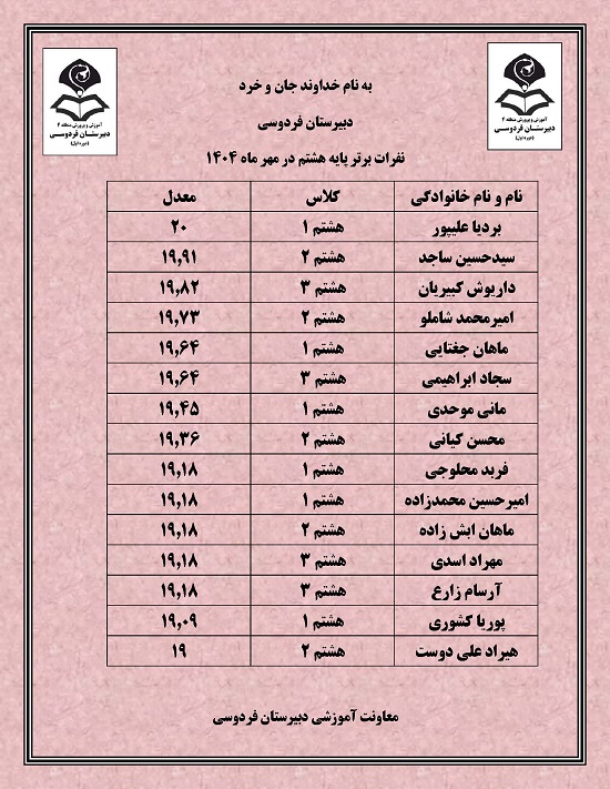 نفرات برتر پایه هشتم در مهرماه 1404