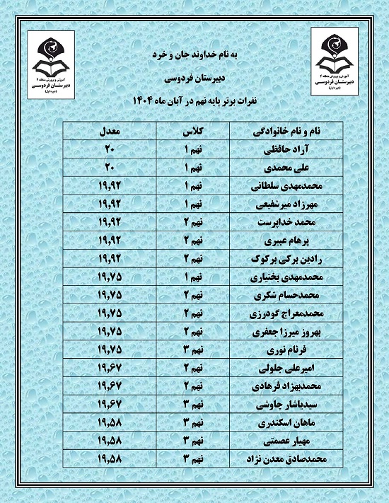 - نفرات برتر پایه نهم در آبان ماه 1404