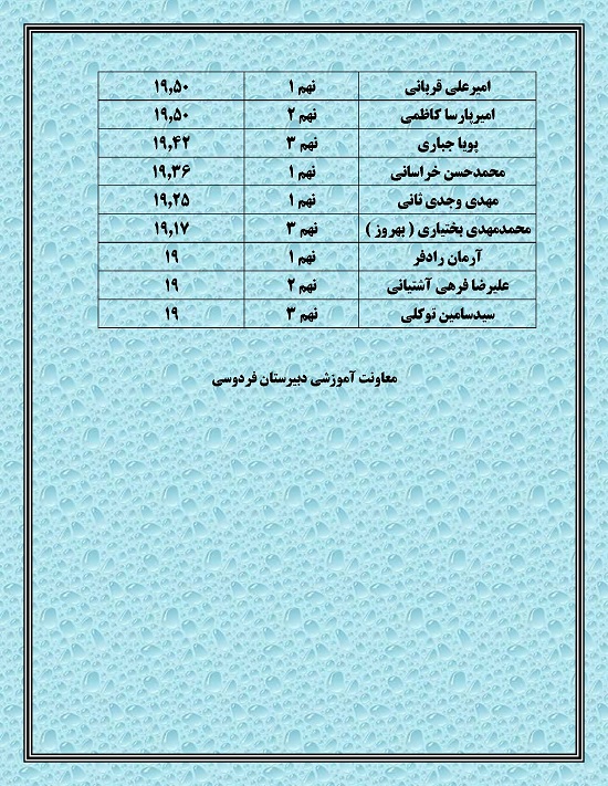 - نفرات برتر پایه هفتم در آبان ماه 1404